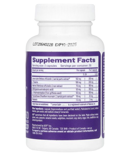 Capsule (hypromellose and purified water), Maltodextrin (corn), silicon dioxide, gum arabic and sodium stearyl fumarate. AOR™ guarantees that all ingredients have been declared on the label. Made without wheat, gluten, nuts, peanuts, sesame seeds, sulphites, mustard, soy, dairy, eggs, fish, shellfish or any animal byproduct.