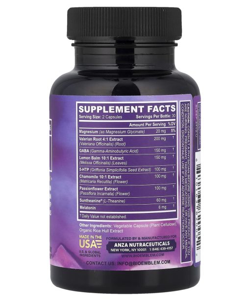 Non GMONon-Habit FormingHerbalSuntheanine®MelatoninMagnesiumGABA + 5-HTP4 BotanicalsDietary SupplementLab TestedcGMP Certified FacilityGluten FreeHelps Support:Falling asleepRestful sleepWaking refreshed