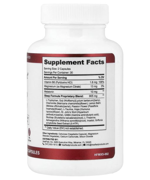 Physician FormulatedNatural Relaxing HerbsWith Melatonin 10 mgGroggy FreePlant Based FormulaNon Habit Forming100% Drug FreeDietary SupplementHormone FreeMade in an FDA Inspected FacilityGMP – Good Manufacturing PracticeGentle but effective formula made with calming herbs and mellow neurotransmitters such as melatonin, GABA, and 5-HTP, to help the body and mind relax and recover.Complete sleep formula to optimize recovery. That means Melatonin, Natural Herbs (Chamomile, Lemon Balm, Hops, Goji berry, and Ashwagandha) all work in concern with Magnesium, GABA, 5-HTP and L Tryptophan and L Theanine to help you not only fall asleep more easily but also stay asleep through the night, and wake up rested.