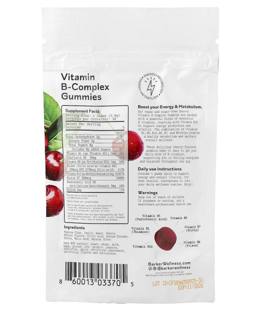 Barker Wellness Co, Vitamin B-Complex Gummies, Cherry, 30 Gummies