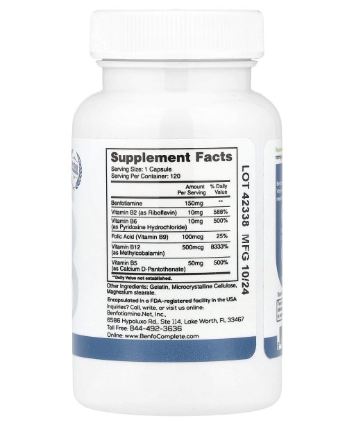 BenfoComplete 150 mg Doctor RecommendedNerve SupportDietary SupplementBenefitsBenfotiamine is a special type of synthetic, fat-soluble form of Vitamin B1. Benfotiamine is highly effective at increasing measurable levels of vitamin B1 in its active coenzyme form.Diabetic SupportHeart HealthEnergy SupportOverall HealthEye HealthKidney HealthMood BoosterNerve Health