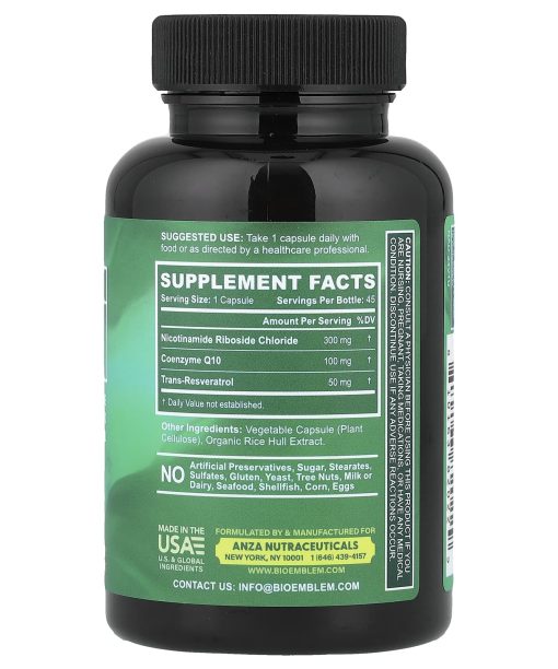 Non GMO Healthy Aging Advanced Nicotinamide Riboside COQ10Resveratrol  Dietary Supplement Lab TestedcGMP Certified FacilityGluten FreeHelps Support: Cognitive FunctionCellular Energy Heart HealthImmune SystemAntioxidant ActivityHealthy Skin