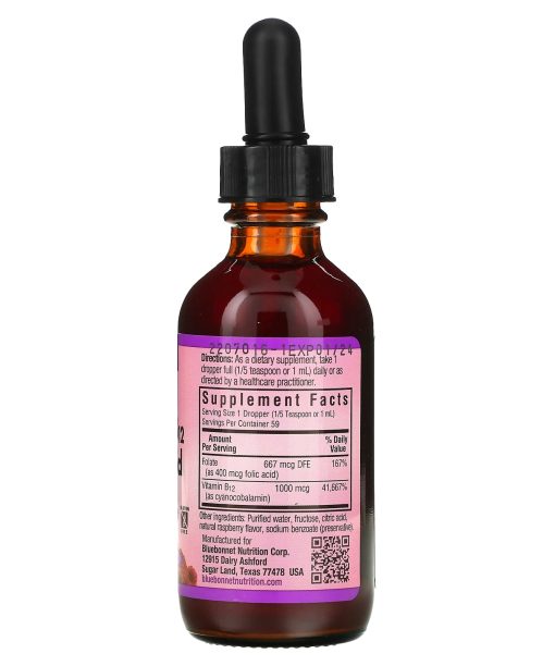 Bluebonnet Nutrition, Liquid Vitamin B-12 & Folic Acid, Raspberry , 2 fl oz (59 ml)