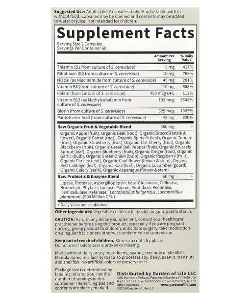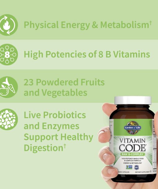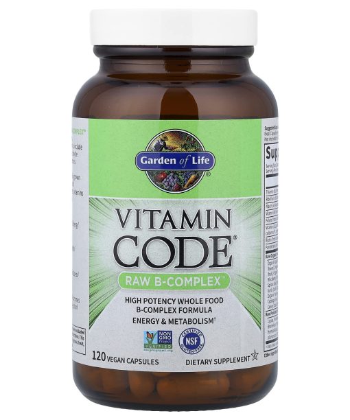 High Potency Whole Good B-Complex FormulaEnergy & MetabolismKosherCertified Gluten Free by NSFDietary SupplementVegan Certified Certified B CorporationWhat Raw MeansNo high heat, synthetic binders, fillers, artificial flavors, sweeteners, colors or additives commonly used in tablets.Non-GMO Project VerifiedIndependent, third party verification.B-CorpCertified by the nonprofit B Lab to meet rigorous standards of social and environmental performance, accountability and transparency.Vitamin Code® Raw B-Complex™ is whole food nutrition, specifically formulated to include high potencies of eight whole food complexed B Vitamins.23 powdered organically grown fruits and vegetables add supporting antioxidants, vitamins and nutrient cofactors.Mental and Physical EnergyHeart and Blood HealthHealthy Response to StressLive Probiotics and Enzymes Support Healthy Digestion