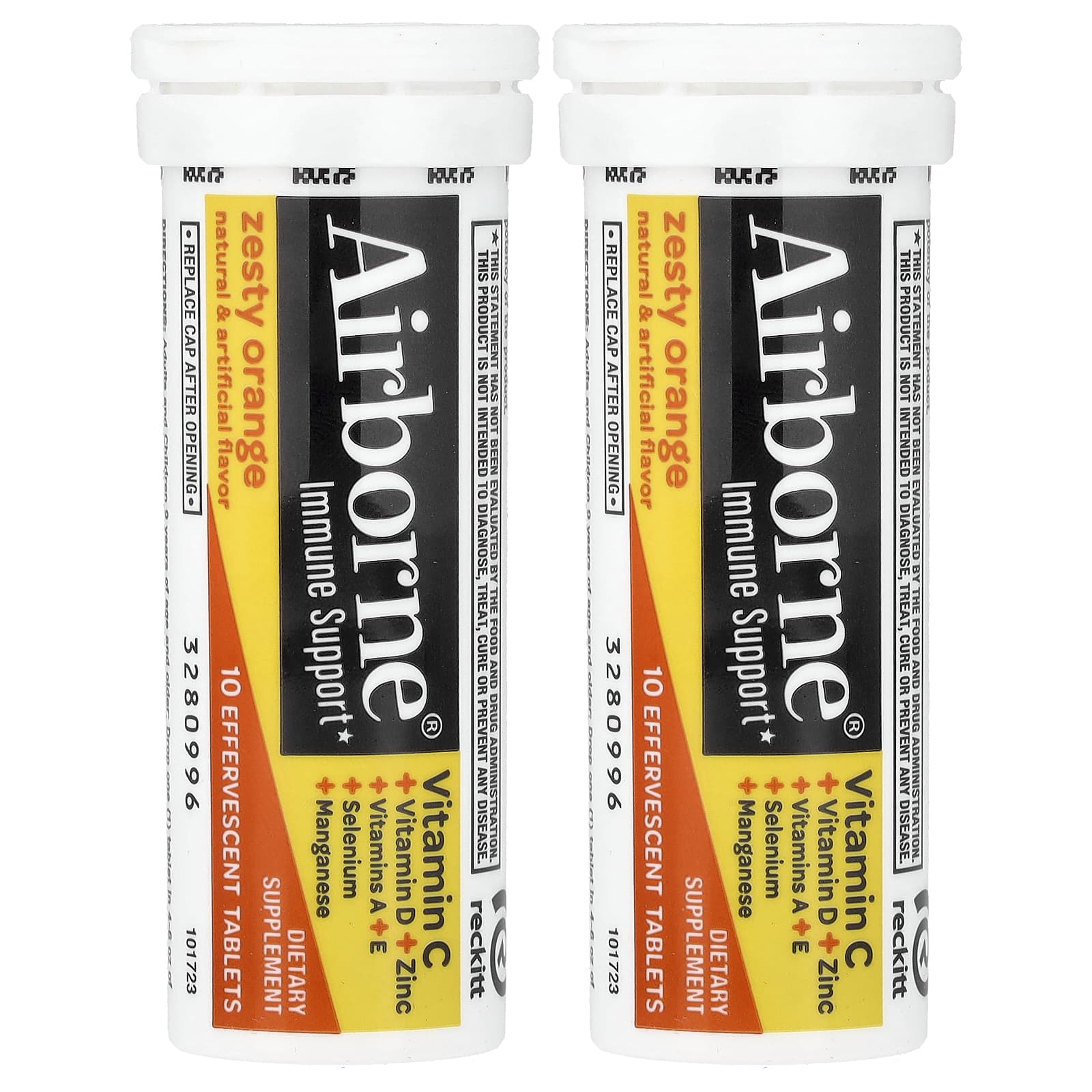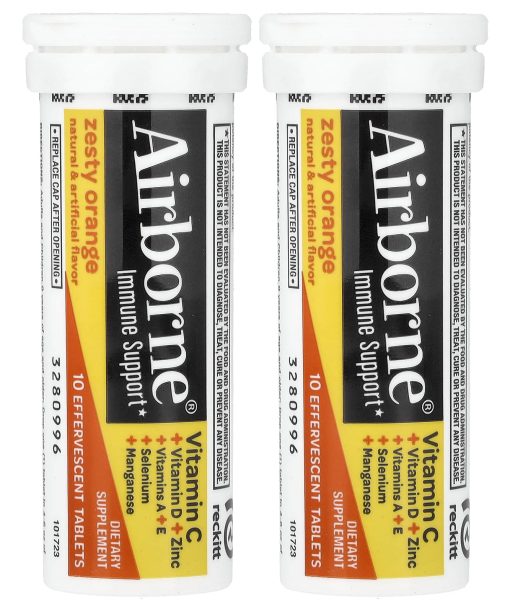AirBorne, Immune Support Supplement, Zesty Orange, 2 Tubes, 10 Effervescent Tablets Each