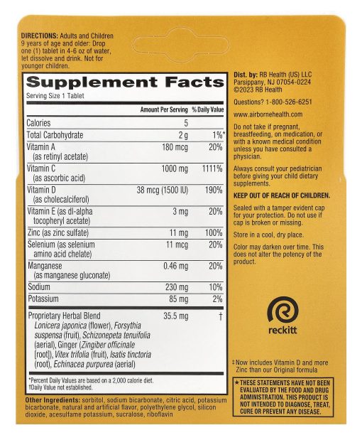 Natural & Artificial FlavorMore Immune Support Ingredients‡7 Key Nutrients for Immune SupportDietary Supplement1 Effervescent Tablet =1000 mg of Vitamin C Now with 38 mcg (1500 IU) of Vitamin D Now with 100% Daily Value of Zinc Excellent Source of Vitamin A, Vitamin E, Selenium & ManganeseOriginal Herbal Blend Including Echinacea & Ginger Gluten Free‡Now includes Vitamin D and more Zinc than our Original formula