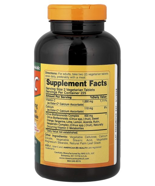 Gentle and Non-AcidicUnique Vitamin C FormulaVegetarian500 mg with Citrus Bioflavonoids24-Hour Immune SupportDietary SupplementNon GMOSuitable For VegansEster-C® is a unique, breakthrough Vitamin C formula containing naturally occurring metabolites. Metabolites help enhance the retention of Vitamin C by your white blood cells, an important part of your immune system. Ester-C®’s water-based manufacturing process neutralizes pH, making it non-acidic and gentle on the stomach. In a daily 1,000 mg dose, Ester-C® delivers 24-hour immune support. . . so once a day is all you need. Added Citrus Bioflavonoids may help your body better absorb and utilize Vitamin C.