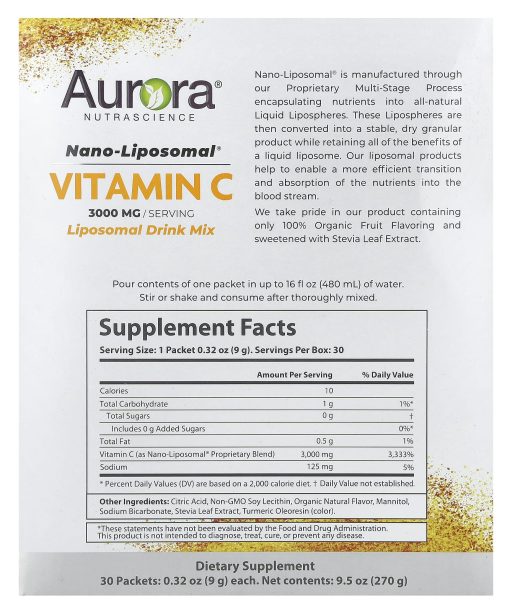 Aurora Nutrascience, Nano-Liposomal® Vitamin C, 30 Packets, 0.32 oz (9 g) Each
