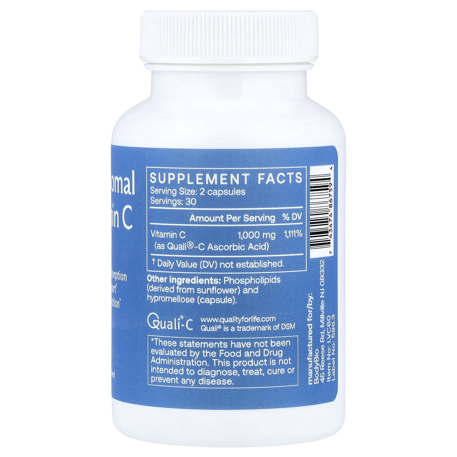 Enhanced AbsorptionImmune SupportCellular ProtectionQuali-c®Dietary SupplementVitamin C, Elevated Liposomal Vitamin C delivers potent antioxidant support with superior absorption. Encapsulated in a phospholipid layer, it can aid immunity, collagen production, and cellular protection.’ This advanced formula ensures optimal delivery, helping to promote resilience and combat oxidative stress effectively.