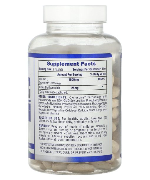 Cyclosome Delivery® For Enhanced Bioavailability1,000 mg Per ServingSupports Immune HealthAntioxidant Support & Collagen ProductionSourced From a GMP Certified FacilityGood Manufacturing Practice – Quality AssuredDietary SupplementVitamin C is one of the most popular antioxidants known to man, but did you know … most Vitamin C has poor bioavailability, meaning you can not absorb it well? Hi-Tech’s Vitamin C with bioflavonoids solves the bioavailability problem with advanced Cyclosome® Liposomal delivery technology – using all natural ingredients so you can absorb more. Liposomes (made from a good fat from phospholipids) protect the Vitamin C and may ease digestion, plus cyclodextrin (made from a natural starch) for optimal absorption technology. Vitamin C with high bioavailability is essential, as it is an important nutrient for promoting immune system health, collagen synthesis, antioxidants and much more. Studies have shown the benefits of high bioavailability Vitamin C may be more vast than previously thought. Absorb more with the Next Generation of Vitamin C.