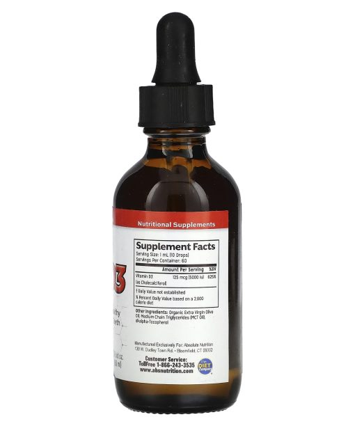 Absolute Nutrition, Vitamin D3 Drops, 5,000 IU, 2 fl oz (60 ml)
