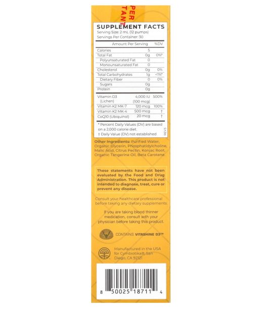 Cymbiotika, D3+K2+CoQ10, Liposomal Delivery, Tangerine, 4,000 IU, 2 fl oz (60 ml)