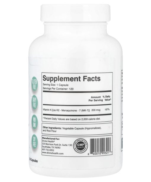 Dietary SupplementGluten FreeDairy FreeNon GMOSoy FreeGMP Quality – Good Manufacturing Practice CertificationSupports vascular function by inhibiting blood vessel calcification.Supports bones Regulates calcium metabolismSupports brain & nerve health