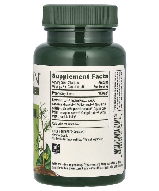 Menopause and BeyondCools & CalmsCertified B CorporationUSDA OrganicHerbal SupplementFair for Life Fair TradeGluten FreeIf It’s Organic It’s Non GMOCertified Organic By: QAIInspired by Ayurveda Since 1996Women’s Natural Transition supports a graceful menopause and beyond by cooling excess heat, supporting a natural balance of hormones, and rejuvenating the mind.