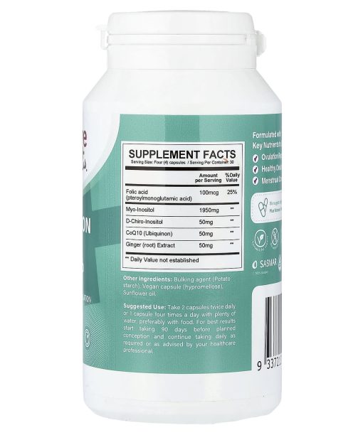 Myo & D-Chiro InositolSupports Cycle Regulation & Ovarian HealthWith CoQ10 + GingerDietary SupplementSuitable for VegansNo Artificial FlavorNo PreservativesGluten FreeWheat FreeBasmar QualityFormulated with Key Nutrients to Support Ovulation Regulation Healthy Ovulation Menstrual Cramps