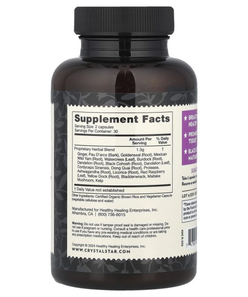 Estd 1978Between Period Support17 Whole HerbsNon -GMO ProductVegetarian Friendly3rd Party TestedDietary SupplementBreast & Uterine HealthPromotes Healthy TissueBlack Cohosh & Maitake MushroomU.S. F.D.A. cGMP-Audited FacilityPromote breast and uterine health with Black Cohosh, Cordyceps Sinensis, Ginger Root, and Pau D’Arco Bark.