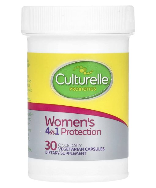 With the #1 Clinically Studied ProbioticStarts Working Within 24 HoursSupports Healthy Vaginal MicrobiotaHelps Guard the Urinary TractPromotes Digestive BalanceProvides Immune Support4 Benefits: Vaginal, Urinary, Immune, DigestiveDietary SupplementMost Clinically Researched Strain in the World†Purity & Potency*** Dairy, Gluten^, Soy FreeTake charge of your unique needs with Culturelle® Women’s 4in1 Protection Designed with a synergistic blend of probiotics & prebiotics that provide women with complete feminine care:Urinary HealthVaginal SupportDigestive SupportImmune HealthBeneficial For Women. Formulated With:Unique Prebiotic Blend4 Lactobacilli StrainsLactobacillus rhamnosus GGFirst of its kind feminine prebiotic blend that starts working within 24 hours.Helps guard the urinary tract from unfriendly bacteria.A clinically proven probiotic blend with strains most commonly found in healthy vaginas.Helps protect vaginal flora, optimizes pH & balances bacteria & yeast.Most clinically studied probiotic strain†. Provides digestive & immune supportOur Brand Values We’re on a mission to inspire better health & wellness for you & your family. We believe in integrity, so we hold ourselves to the highest standards of truth. We believe in the natural power of your body’s microbiome, & in scientific research & products that will unlock its full potential. We believe in uncompromising quality, safety & proven efficacy. We believe in empowering you to embrace every day with confidence.† Based on the number of Lactobacillus rhamnosus GG clinical studies, as of January 2022.***Guaranteed potency through date on box when stored as directed.^Meets the FDA’s guidelines for gluten-free.Not a reduce calorie food.
