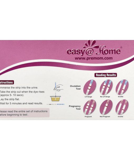Specially designed for “trying to conceive” women to get pregnant naturally: These Easy@Home ovulation tests give women a greater chance of predicting their most fertile days, even if their cycle lengths vary. Pregnancy tests can tell pregnancy sooner than a missed period. Helping to track your ovulation progression, the ovulation test strips also minimize the chances of missing your LH surge.Easy to test: simply dip the test in your urine until the dye rises into the result window(approximately 5-10 seconds).Easy to read: Ovulation tests — a test line as dark or darker than the control line indicates a positive result; Pregnancy tests — two lines means pregnant and one line means not pregnant.