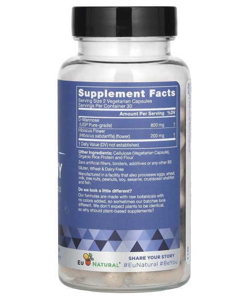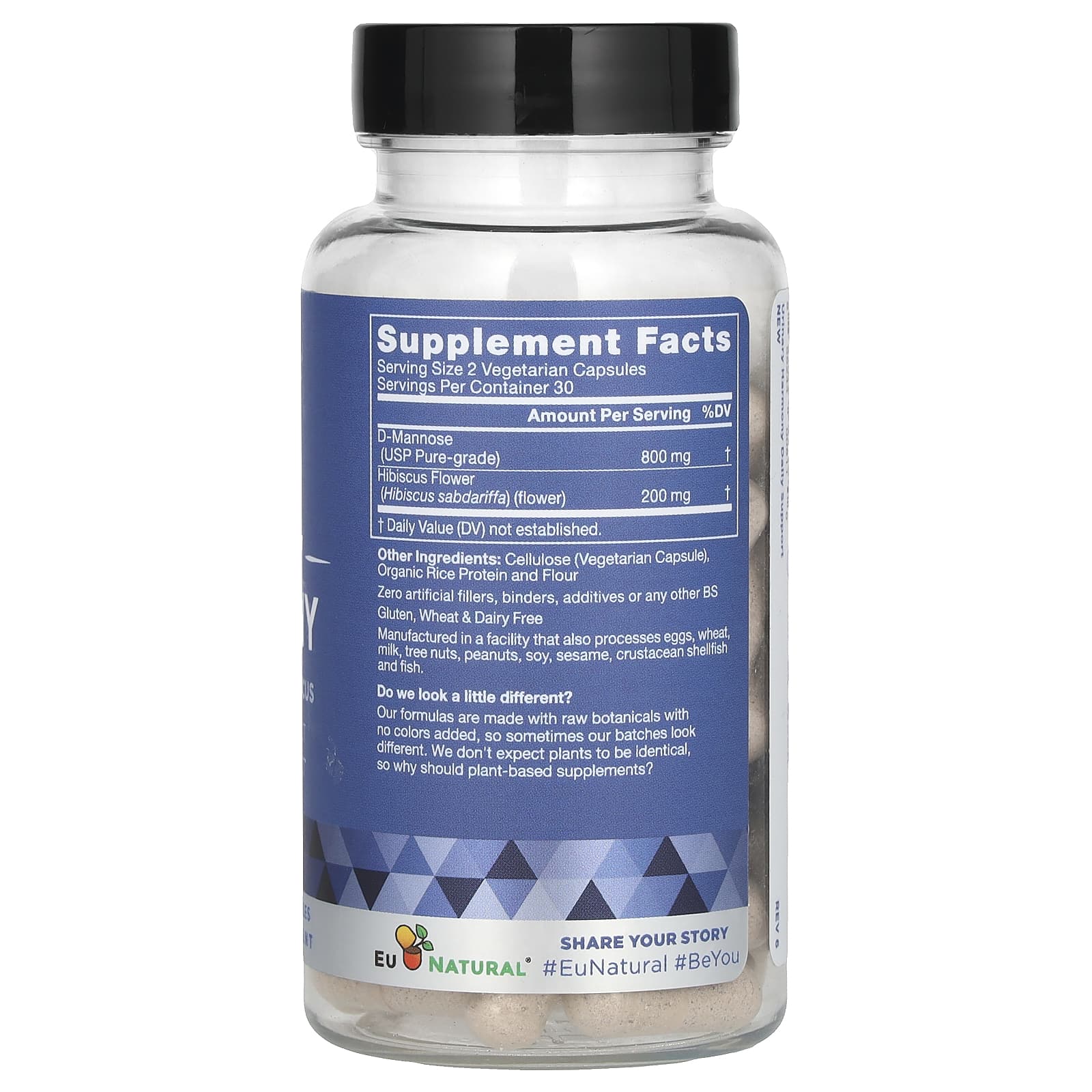 D-Mannose & HibiscusCleanse & Protect the Urinary TractDietary SupplementZero Artificial Fillers, Binders, Additives or any Other BSGluten, Wheat & Dairy FreePlant-Powered Multi-Blends for “Eu” (You)!Quality GuaranteedThis clinically studied blend helps to flush, cleanse & protect the urinary tract and improve overall urinary health.Do we look a little different? Our formulas are made with raw botanicals with no colors added, so sometimes our batches look different. We don’t expect plants to be identical, so why should plant-based supplements?