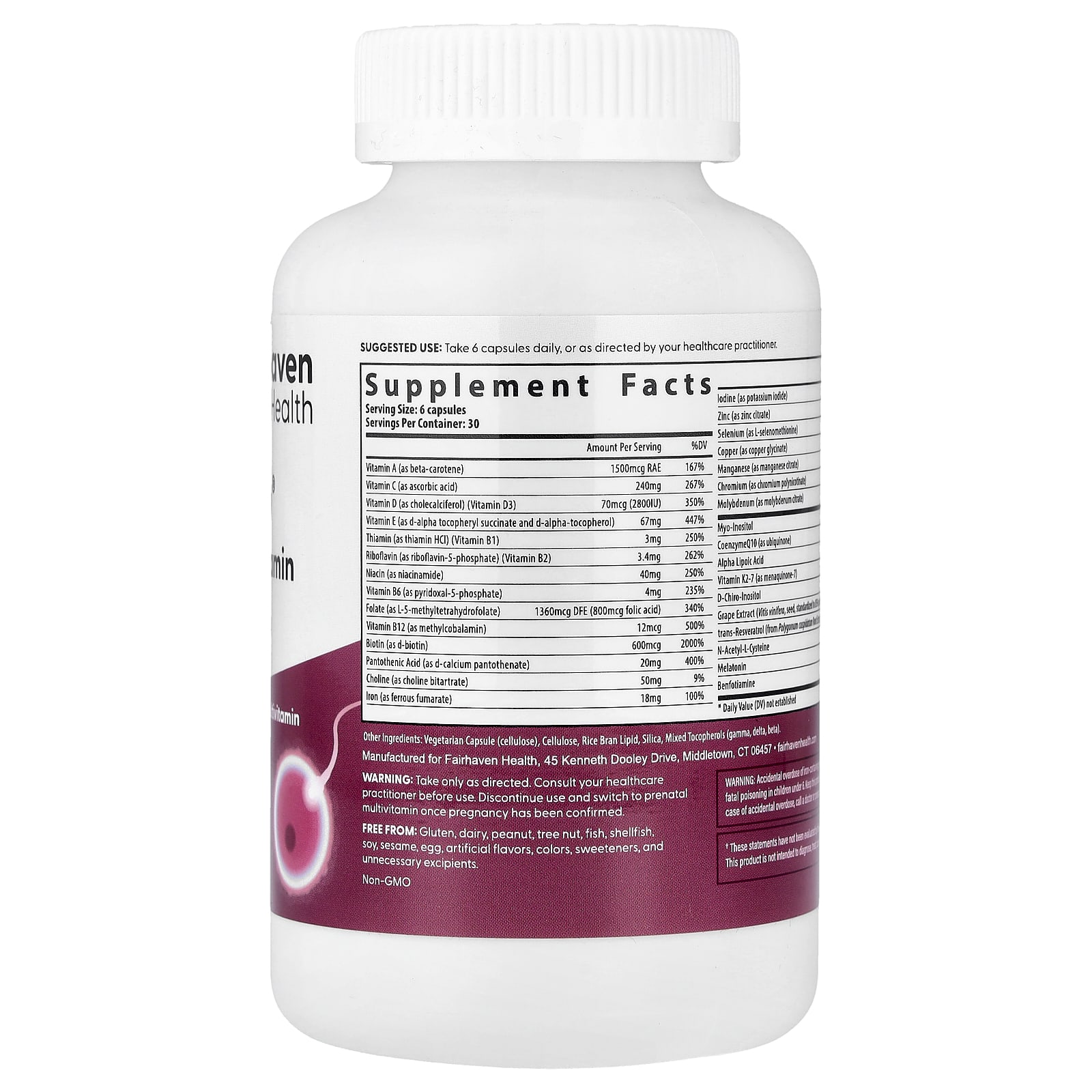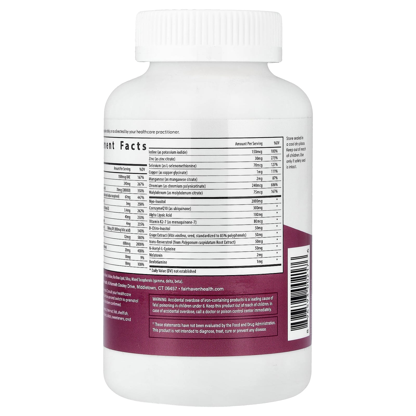 Fertility MultivitaminDietary SupplementNon-GMOClinically studied advanced multivitamin for female reproductive health.With myo-inositol, d-chiro inositol, methylfolate, and a fertility antioxidant blend.