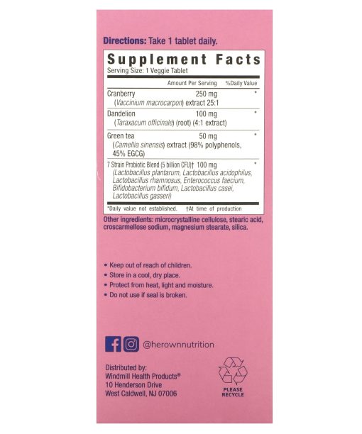 Relieve & RestoreDietary SupplementVeganNon GMOGluten FreeSoy FreeNo Synthetic Colors or PreservativesAlleviates symptoms of a UTI while restoring natural pH balance to help support vaginal health.Cranberry – Supports urinary tract health7 Strain Probiotic Blend – Helps support vaginal pH & microbiomeDandelion – Can help to support bladder healthSay Goodbye UTIUTI Supports:ph BalanceSymptom ReliefGood BacteriaWe create essential health supplements formulated for the modern woman’s everyday needs. Her Own is women’s wellness, evolved.