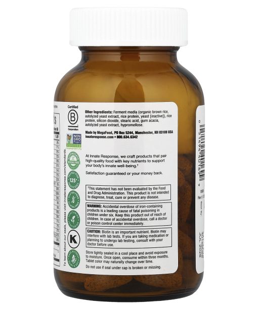 Ferment media (organic brown rice, autolyzed yeast extract, rice protein, yeast [inactive]), rice protein, silicon dioxide, stearic acid, gum acacia, autolyzed yeast extract, hypromellose.